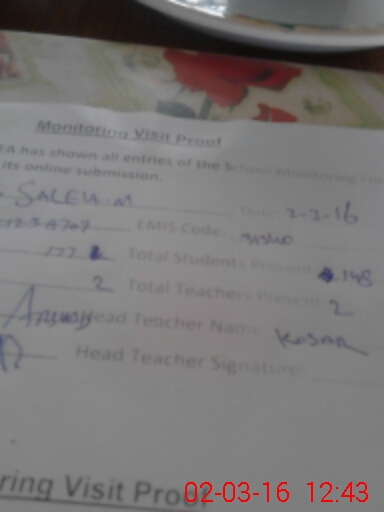 | Attendance Register | Head Teacher | MEA with School | Visit Proof |
