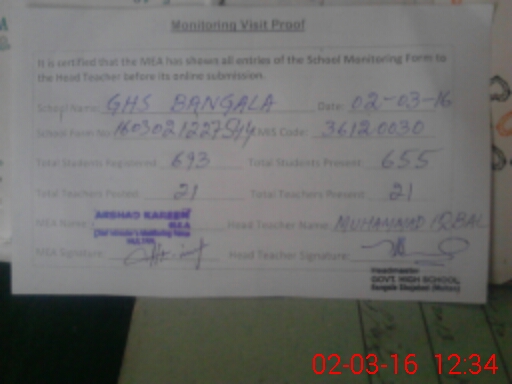 | EMIS Code: 36120030 | Name of School: GHS BANGALA P.O GARDEZPUR TEH.SHUJABAD | |||