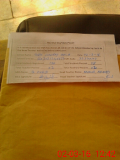 | Certified that this School was Inspected by the Undersigned MEA/DMO Today and the Information Stated Above is as Per Record. | |||||