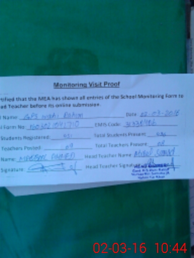 | EMIS Code: 31330406 | Name of School: GPS WAHI RAHIM | |||