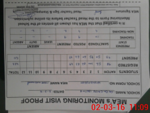 | Attendance Register | Head Teacher | MEA with School | Visit Proof |
