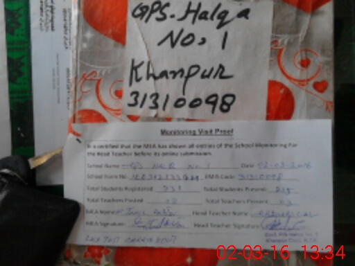 | EMIS Code: 31310098 | Name of School: GPS MC HALQA NO 1 | |||