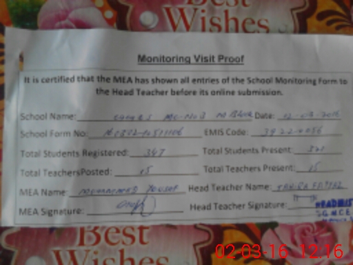 | Certified that this School was Inspected by the Undersigned MEA/DMO Today and the Information Stated Above is as Per Record. | |||||