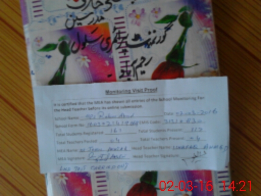 | Attendance Register | Head Teacher | MEA with School | Visit Proof |