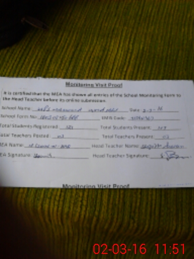 | Certified that this School was Inspected by the Undersigned MEA/DMO Today and the Information Stated Above is as Per Record. | |||||