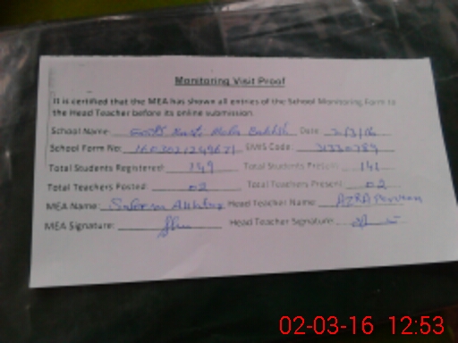 | Certified that this School was Inspected by the Undersigned MEA/DMO Today and the Information Stated Above is as Per Record. | |||||