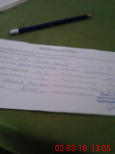 | Name: Se**** Al**** Designation: (School Headmaster's/Headmistress's) PST/PTC/JV Phone/Cell Number: 03**** |