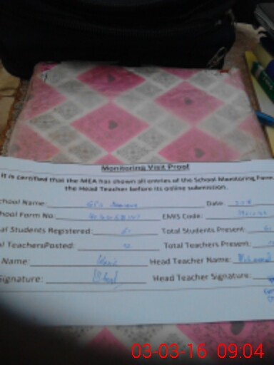 | Attendance Register | Head Teacher | MEA with School | Visit Proof |