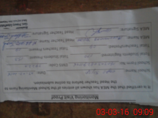 | Attendance Register | Head Teacher | MEA with School | Visit Proof |