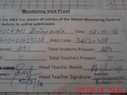 | EMIS Code: 36130458 | Name of School: GGHS BOTAY WALA MAKHDOOM RASHEED | |||