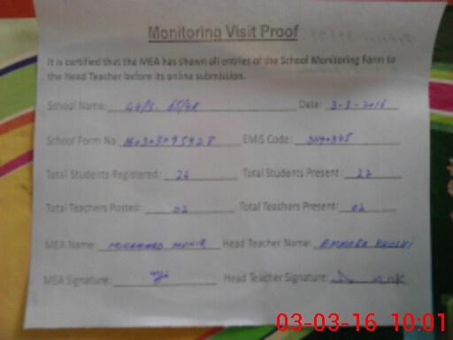 | Certified that this School was Inspected by the Undersigned MEA/DMO Today and the Information Stated Above is as Per Record. | |||||