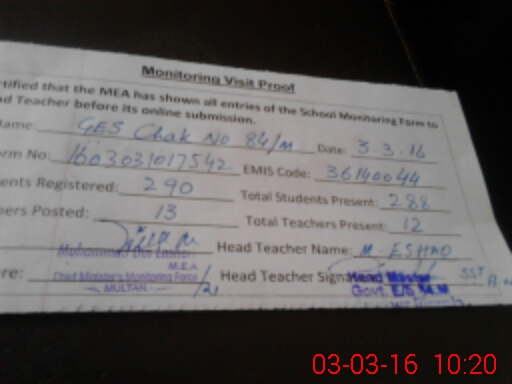 | EMIS Code: 36140044 | Name of School: GHS CHAK 84 / M | |||