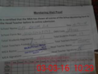 | Certified that this School was Inspected by the Undersigned MEA/DMO Today and the Information Stated Above is as Per Record. | |||||