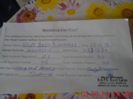 | EMIS Code: 31331230 | Name of School: GGPS BASTI LARRAN NO. 2 | |||