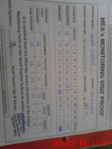 | Certified that this School was Inspected by the Undersigned MEA/DMO Today and the Information Stated Above is as Per Record. | |||||