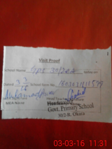 | EMIS Code: 39320429 | Name of School: GPS CHAK NO. 30/2-R | |||