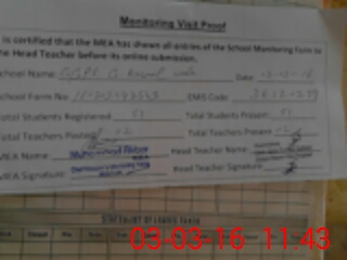 | Attendance Register | Head Teacher | MEA with School | Visit Proof |