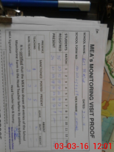 | Attendance Register | Head Teacher | MEA with School | Visit Proof |