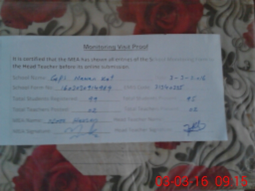 | EMIS Code: 31340335 | Name of School: GPS NAWAN KOT | |||