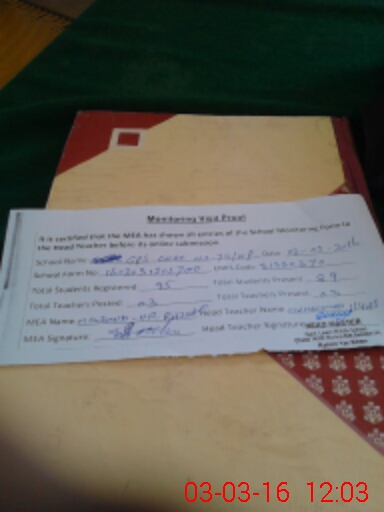 | Attendance Register | Head Teacher | MEA with School | Visit Proof |