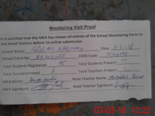 | EMIS Code: 35410595 | Name of School: GGCMS WAGHARY | |||