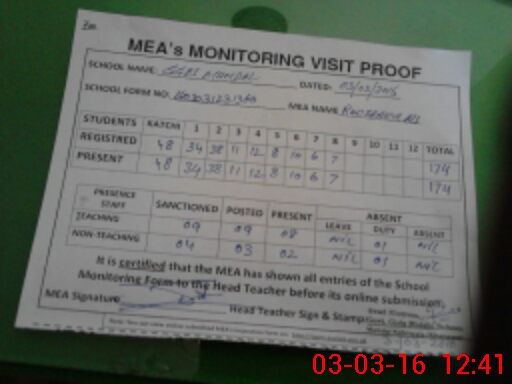 | Certified that this School was Inspected by the Undersigned MEA/DMO Today and the Information Stated Above is as Per Record. | |||||