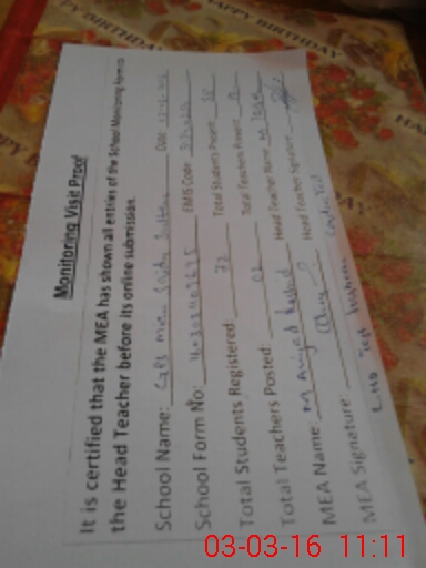 | Certified that this School was Inspected by the Undersigned MEA/DMO Today and the Information Stated Above is as Per Record. | |||||
