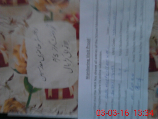 | School Visited by School Health & Nutrition Supervisor (No. of Visits) | 1 | Name1: | Abdul Rauf | Name2: | |