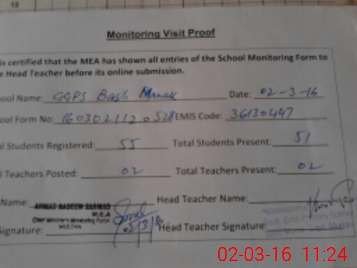 | Certified that this School was Inspected by the Undersigned MEA/DMO Today and the Information Stated Above is as Per Record. | |||||