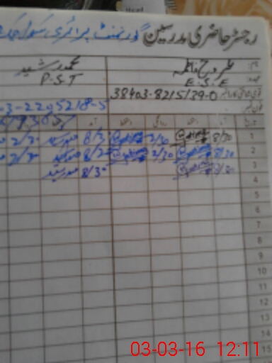 | Name: NA**** IQ**** AH**** Designation: (School Headmaster's/Headmistress's) PST Phone/Cell Number: 03**** |
