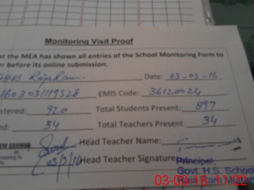 | EMIS Code: 36120024 | Name of School: GHSS RAJA RAM SHUJABAD | |||