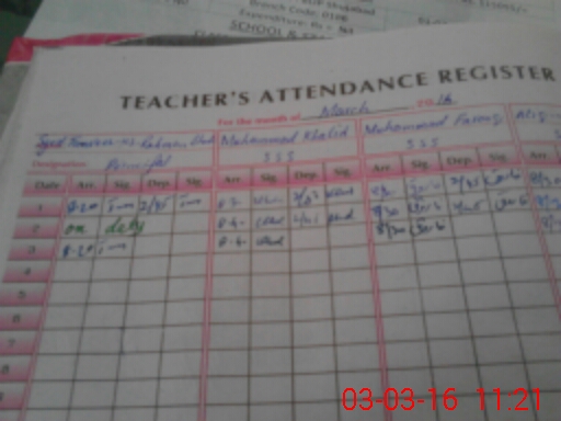 | Name: SA**** AB**** HU**** SH**** Designation: (School Headmaster's/Headmistress's) IN CHARGE SSS ARABIC Phone/Cell Number: 03**** |
