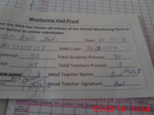 | Attendance Register | Head Teacher | MEA with School | Visit Proof |