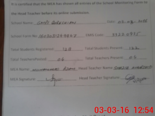 | EMIS Code: 33220935 | Name of School: GMPS QURESHIAN | |||