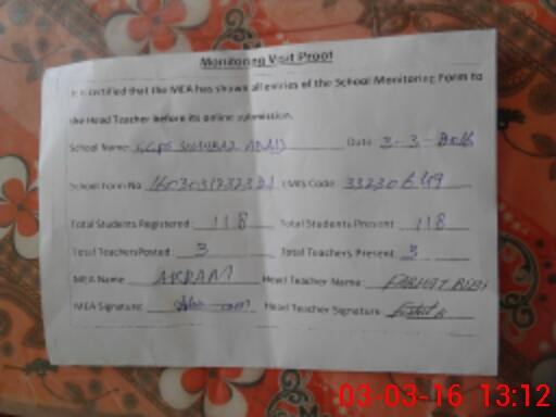 | Certified that this School was Inspected by the Undersigned MEA/DMO Today and the Information Stated Above is as Per Record. | |||||