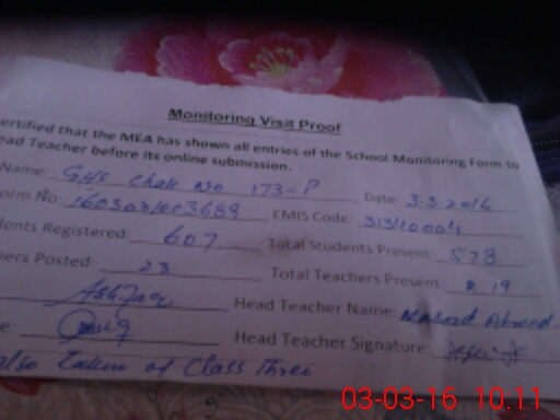| EMIS Code: 31340004 | Name of School: GHS CHAK 173/P | |||