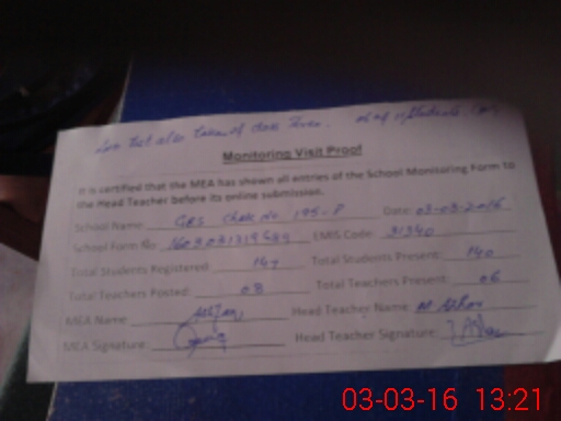 | EMIS Code: 31340046 | Name of School: GES CHAK NO 195/P SADIQABAD | |||