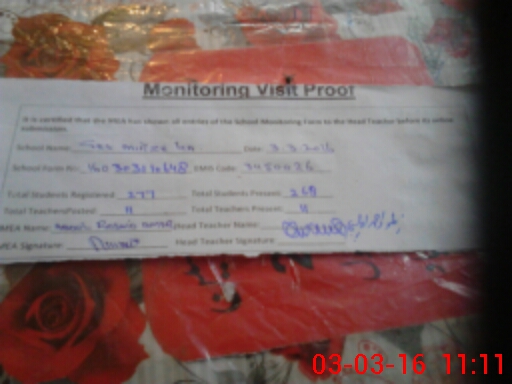 | Certified that this School was Inspected by the Undersigned MEA/DMO Today and the Information Stated Above is as Per Record. | |||||