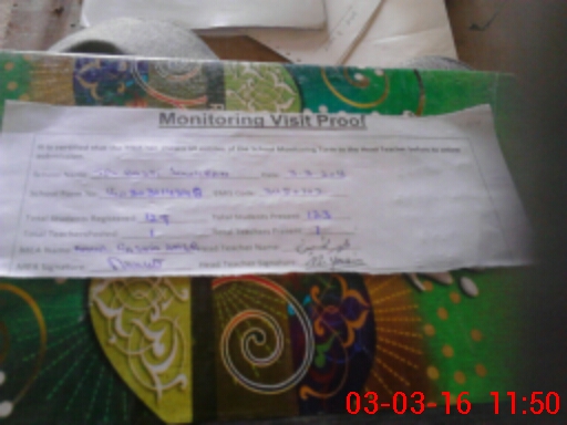 | Attendance Register | Head Teacher | MEA with School | Visit Proof |