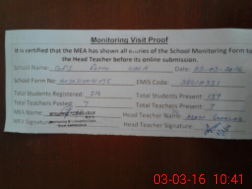 | Attendance Register | Head Teacher | MEA with School | Visit Proof |