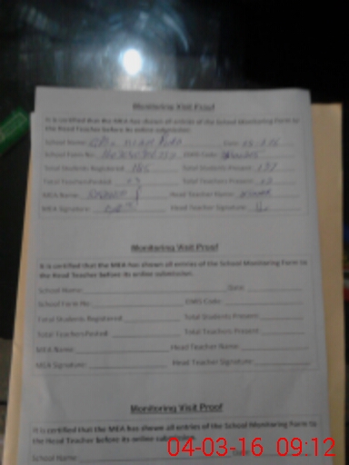 | Attendance Register | Head Teacher | MEA with School | Visit Proof |