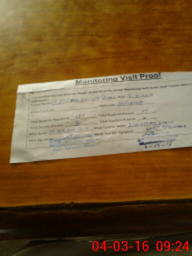 | Attendance Register | Head Teacher | MEA with School | Visit Proof |