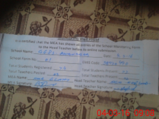 | Attendance Register | Head Teacher | MEA with School | Visit Proof |