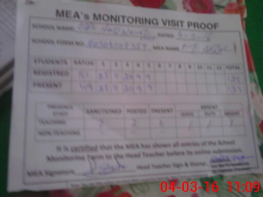 | Certified that this School was Inspected by the Undersigned MEA/DMO Today and the Information Stated Above is as Per Record. | |||||