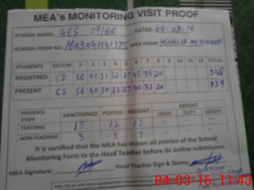 | Certified that this School was Inspected by the Undersigned MEA/DMO Today and the Information Stated Above is as Per Record. | |||||