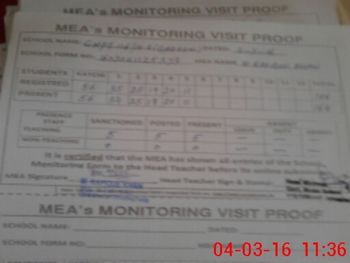 | Attendance Register | Head Teacher | MEA with School | Visit Proof |