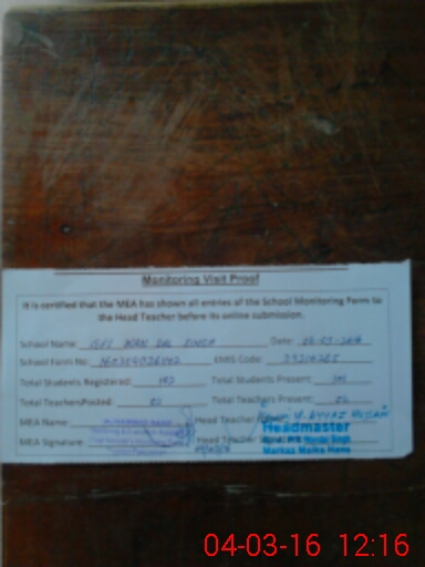 | Certified that this School was Inspected by the Undersigned MEA/DMO Today and the Information Stated Above is as Per Record. | |||||