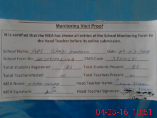 | EMIS Code: 39210531 | Name of School: GPS GHAZI MARDAN P/O CHAK BEDI | |||