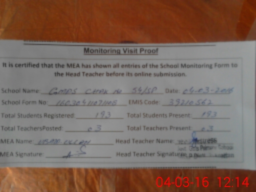 | EMIS Code: 39210562 | Name of School: GMPS 54/SP | |||