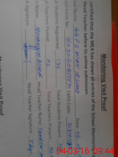 | EMIS Code: 31310478 | Name of School: GGPS MIAN IRSHAD AHMAD | |||